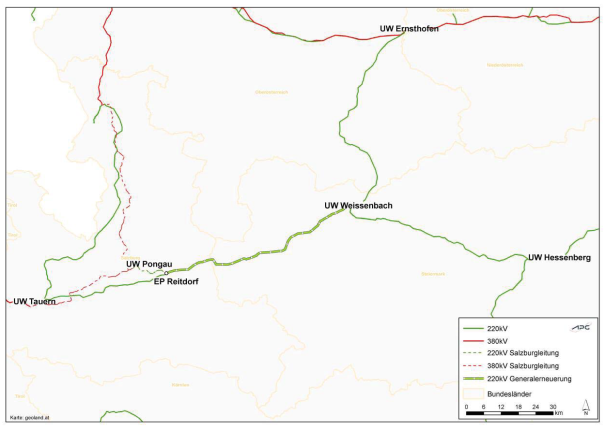 Das Bundesverwaltungsgericht erkennt durch den Richter Dr. Grassl über die Beschwerde der Landesumweltanwaltschaft Salzburg gegen den Bescheid der Steiermärkischen Landesregierung vom 30.10.2020, Zl. ABT13-203209/2020-9, betreffend Feststellung nach § 3 Abs. 7 UVP-G 2000 zum Vorhaben „Generalerneuerung der 220 kV-Leitung Reitdorf – Weißenbach“ (mitbeteiligte Parteien: 1. XXXX , vertreten durch die Onz, Onz, Kraemmer, Hüttler Rechtsanwälte GmbH, Schwarzenbergplatz 16, 1010 Wien, 2. XXXX , 3. XXXX , 4. XXXX , 5. XXXX , 6. XXXX , 7. XXXX , 8. XXXX , 9. XXXX , 10. XXXX , 11. XXXX , 12. XXXX , 13. XXXX , 14. XXXX , 15. XXXX ), nach Durchführung einer mündlichen Verhandlung, zu Recht: