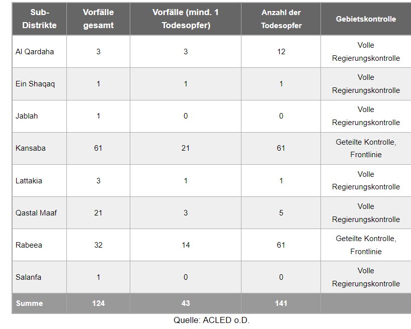 Die Entscheidung Moskaus, 2015 in Syrien militärisch zu intervenieren, hat das Assad-Regime in Damaskus effektiv geschützt. Russische Luftstreitkräfte und nachrichtendienstliche Unterstützung sowie von Iran unterstützte Milizen vor Ort ermöglichten es dem Regime, die Opposition zu schlagen und seine Kontrolle über große Teile Syriens brutal wiederherzustellen. Seit März 2020 scheint der Konflikt in eine neue Patt-Phase einzutreten, in der drei unterschiedliche Gebiete mit statischen Frontlinien abgegrenzt wurden (IPS 20.5.2022). Das Assad-Regime kontrolliert rund 70 % des syrischen Territoriums. Seit dem Höhepunkt des Konflikts, als das Regime - unterstützt von Russland und Iran - unterschiedslose, groß angelegte Offensiven startete, um Gebiete zurückzuerobern, hat die Gewalt deutlich abgenommen. Auch wenn die Gewalt zurückgegangen ist, kommt es entlang der Konfliktlinien im Nordwesten und Nordosten Syriens weiterhin zu kleineren Scharmützeln. Im Großen und Ganzen hat sich der syrische Bürgerkrieg zu einem internationalisierten Konflikt entwickelt, in dem fünf ausländische Streitkräfte - Russland, Iran, die Türkei, Israel und die Vereinigten Staaten - im syrischen Kampfgebiet tätig sind und Überreste des Islamischen Staates (IS) regelmäßig Angriffe durchführen (USIP 14.3.2023).