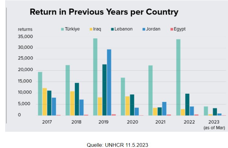 EIP - European Institute of Peace (7.2019): Refugee return in Syria: Dangers, security risks and information scarcity, https://www.ecoi.net/en/file/local/2018602/EIP+Report+-+Security+and+Refugee+Return+in+Syria+-+July.pdf , Zugriff 7.7.2023