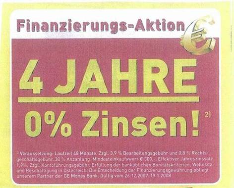 Der nach § 14 Abs 1 UWG klagelegitimierte Verein zur Wahrung von Verbraucherinteressen begehrte, der Beklagten aufzutragen, es im geschäftlichen Verkehr zu unterlassen, a) in ihrer Werbung, insbesondere in Werbeprospekten, ihren Kunden die Finanzierung des Kaufpreises über zinsenlose Kredite in Aussicht zu stellen ‑ hilfsweise b): den unrichtigen Eindruck zu erwecken, sie biete ihren Kunden die Finanzierung des Kaufpreises über zinsenlose Kredite an -, etwa durch die blickfangartig hervorgehobene Ankündigung „0 % Zinsen“, wenn die Inanspruchnahme des Kredits tatsächlich mit Entgelten, etwa Bearbeitungs‑ und Kontoführungsgebühren und damit mit einem Effektivzins von beispielsweise 3,9 % oder 5,02 % verbunden ist; der Kläger begehrte ferner, ihn zur Urteilsveröffentlichung zu ermächtigen. Die Ankündigung verstoße gegen Z 20 Anhang zum UWG, weil sie als Angebot der Vermittlung eines unverzinsten Darlehens, somit einer Dienstleistung zu verstehen und daher an diesem Tatbestand zu messen sei. Als unvermeidbare Kosten nach der genannten Bestimmung seien jedoch nur die staatlichen Rechtsgeschäftsgebühren anzusehen, nicht hingegen die Bearbeitungs- und Kontoführungsentgelte. Überdies sei die Ankündigung irreführend gemäß § 2 Abs 1 UWG. Dem Umworbenen werde ein besonderer Preisvorteil (§ 2 Abs 1 Z 4 UWG) vorgegaukelt, der aufklärende Hinweis auf die anfallenden Bearbeitungs‑ und Kontoführungsgebühren sei in den Prospekten kaum zu entziffern und im Online‑Katalog schlicht unleserlich. Das Versprechen einer zinsenfreien Kreditierung der Kaufpreisforderung sei geeignet, den Durchschnittsverbraucher einerseits zum Kauf eines Produkts und andererseits auch zur Inanspruchnahme eines Kredits zu bewegen, wovon er bei Kenntnis der wahren Umstände Abstand genommen hätte.