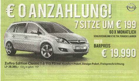 Information: Das Verbraucherkreditgesetz ist auf gegenständliches Leasingangebot nicht anwendbar, da kein Tatbestand der Ziffern 1 bis 4 des § 26 VKrG erfüllt wird.“