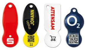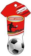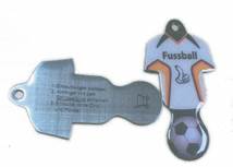 Die Klägerin fertigt in dieser Form Schlüsselanhänger mit Einkaufswagenlöser aus Metall und bedruckt sie mit Designs von Sporttrikots und Bällen, wie zB: