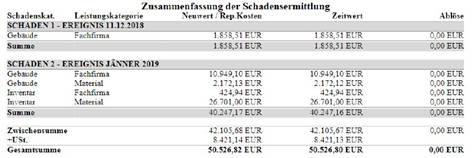 [6] Aufgrund des Schadensfalls vom Jänner 2019 (sowie eines bereits zuvor erfolgten Schadensfalls vom Dezember 2018) wurde vom Haftpflichtversicherer der Firma K* GmbH * im Februar 2019 ein Schadensgutachten eingeholt, in dem folgende Schadenbehebungskosten dargestellt wurden: