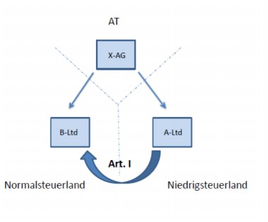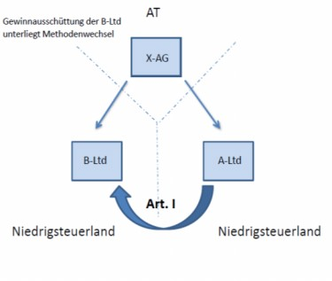 - auf die ausländische Gesellschaft Auslandsvermögen (zB Betriebsstätte, unbewegliches Vermögen) übergeht, das mangels eines DBA oder aufgrund eines DBA mit Anrechnungsmethode mit dem Lagestaat vor der verschmelzungsbedingten Übertragung in Österreich besteuert werden konnte;