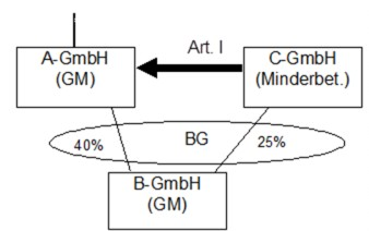 Einbringungsbedingt ist die Y-GmbH ab dem dem Einbringungsstichtag folgenden Tag (1.1.03) an der B-GmbH beteiligt.