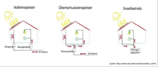 Bei Photovoltaikanlagen werden drei verschiedene Nutzungstypen unterschieden: