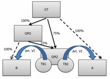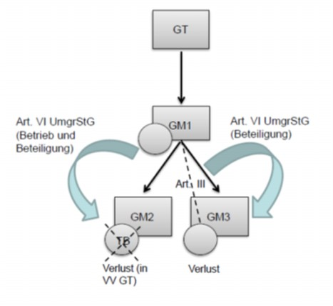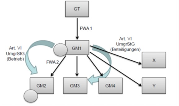 Die verhältniswahrende Steuerabspaltung ist nur im Wege der s Durchschleusmethode nmodells gemäß § 38a Abs. 3 Z 1 UmgrStG möglich, da das Schwesternmodell gemäß § 38a Abs. 3 Z 2 UmgrStG einen der Einbringung folgenden Anteilstausch erfordert.