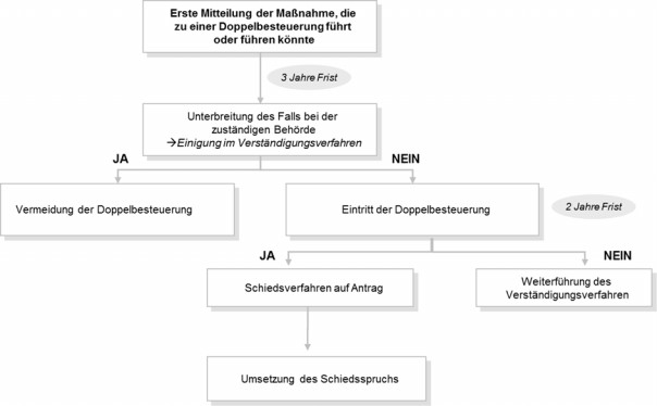 Wurde innerhalb von 2 Jahren nach Unterbreitung des Streitfalles im anderen Vertragsstaat keine Lösung erzielt, ist auf Antrag der den Fall im Verständigungsverfahren unterbreitenden Person die Einleitung eines Schiedsverfahrens zwingend (OECD-MK Rz 63, Rz 70 und Rz 75). Grundsätzlich muss die abkommenswidrige Besteuerung bereits eingetreten sein, dh. dass die Steuer bereits festgesetzt sein muss oder in sonstiger Weise dem Abkommensberechtigten mitgeteilt wurde. Die drohende Doppelbesteuerung lässt den Ablauf der 2-Jahresfrist und somit die Durchführung eines Schiedsverfahrens noch nicht beginnen (OECD-MK Rz 72).