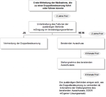 Konnte im Rahmen des Verständigungsverfahrens keine Einigung erzielt werden, kommt es zur Einsetzung eines beratenden Ausschusses, der eine Stellungnahme erstellt, wie die Doppelbesteuerung beseitigt werden soll.