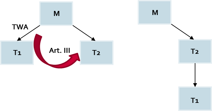 In X2 bringt die T1-GmbH TB1 gemäß Art. III UmgrStG in die M-GmbH ein (up-stream).