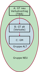 Die Unternehmensgruppe ALT besteht aus dem Gruppenträger B und dem Gruppenmitglied C. Die Körperschaft A, die nicht Teil der Unternehmensgruppe ALT ist, hat eine dem Grunde nach abzugsfähige Teilwertabschreibung gemäß § 12 Abs. 3 Z 2 KStG 1988 an der Beteiligung an dem Gruppenträger B vorgenommen, die bei ihr zu vortragsfähigen Verlusten geführt hat.