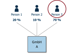 - einer Person A die Mehrheit der Stimmrechte zustehen kann und