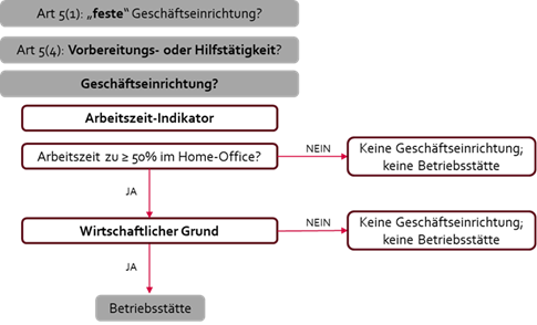 Die Frage, ob Tätigkeiten einer Person im Homeoffice eine Betriebsstätte für ein Unternehmen begründen, ist unter Heranziehung aller Fakten und Umstände des jeweiligen Einzelfalls zu beurteilen.