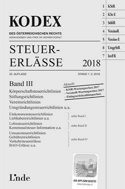BAND III mit – Körperschaftsteuerrichtlinien – Stiftungsrichtlinien – Vereinsrichtlinien – Umgründungssteuerrichtlinien ua Aktuell: – KStR-Wartungserlass 2017 – VereinsR-Wartungserlass 2017 – Einlagenrückzahlungserlass“