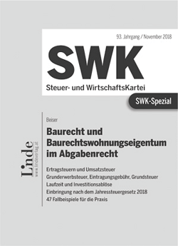 Von den Ertragsteuern über bilanzielle und umsatzsteuerliche Fragen bis zur Grunderwerbsteuer, Eintragungsgebühr und Grundsteuer: Das „SWK-Spezial Baurecht und Baurechtswohnungseigentum im Abgabenrecht“ gibt einen Überblick über alle relevanten Abgabenarten in Bezug auf Baurechte und stellt dabei die praktische Anwendung in den Mittelpunkt. Nach dem VwGH ist das Baurecht nach § 2 GrEStG ein selbständiges, vom Grund und Boden verschiedenes Grundstück; daher ist der gemeine Wert (Grundstückswert) eines Baurechts für jedes Baurecht selbständig zu ermitteln. Zum besseren Verständnis bietet Ihnen dieses SWK-Spezial 47 Fallbeispiele von Baurechten in den Ertragsteuern (Bilanzierung, ImmoESt, KöSt), in der USt, GrESt und Eintragungsgebühr sowie in der Grundsteuer. Es erläutert auch die unterschiedlichen Lösungen nach dem Gesetz und nach der Verwaltungspraxis (BMF).