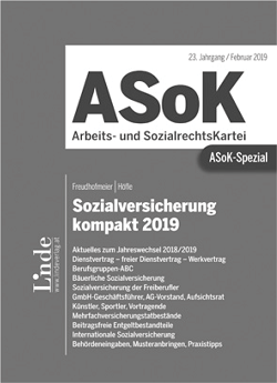 Dienstvertrag/freier Dienstvertrag/Werkvertrag – neue monatliche Beitragsgrundlagenmeldung – Berufsgruppen ABC: „Sozialversicherung kompakt 2019“ gibt Ihnen einen kompakten Überblick über das vielschichtige Sozialversicherungsrecht und präsentiert das Thema praxisnah aus der Sicht von zwei Steuerberatern. Es bereitet die Neuentwicklungen zum Jahreswechsel 2018/2019 sowie zahlreiche andere relevante Themen anwenderfreundlich auf, so zB
