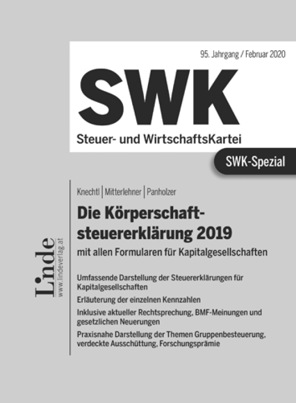 Das „SWK-Spezial – Die Körperschaftssteuererklärung 2019“ bietet eine Kommentierung sämtlicher Formulare und Beilagen, die für die Erstellung der Körperschaftsteuererklärung 2019 relevant sind.