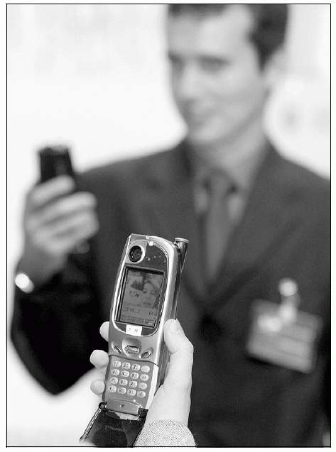 Handys der UMTS-Generation (Universal Mobile Telecommunications Service) werden beim Telephonieren auch Bilder übertragen können. Darüber hinaus wollen die Netzbetreiber auch im großen Stil in den Handel mit Waren, Dienstleistungen und Informationen einsteigen. Auf diese Weise hoffen sie, die teuer bezahlten UMTS-Lizenzen zurückzuverdienen. Photo: ap