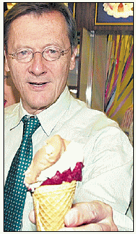 Kanzler Schüssel warb auch mit Eis für die neue Abfertigung. Photo: Michaela Seidler