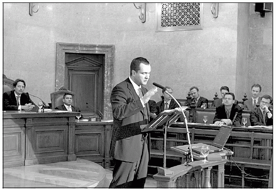 Michael-Stephan Rauch, nach eigenen Aussagen geläuterter früherer Hacker, als eine Art Zeuge bei der Enquete "Security" im Schwurgerichtssaal des Grauen Hauses. Photo: M. Seidler