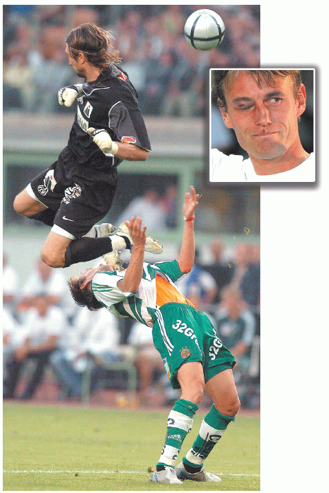 Ist ein Zweikampf nicht mehr sporttypisch, kann der Gegenspieler auf Schadenersatz geklagt werden. Sogar strafrechtliche Konsequenzen können drohen: Wegen der brutalen Attacke von Austria-Tormann Joey Didulica gegen den belgischen Rapid-Stürmer Axel Lawaree im Wiener Fußball-Derby leitete die Staatsanwaltschaft eine Voruntersuchung wegen Körperverletzung ein. [sportfotos.at/Zierlinger, Bildagentur Zolles/Graf]