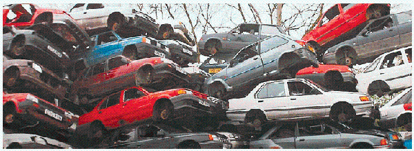 Zu gut für den Müll, zu alt zum Reparieren? Die geringen Reparaturkosten im osteuropäischen Raum machen manche Havarie-Fahrzeuge zu interessanten Werkstücken. Es soll schon vorgekommen sein, dass zusammengeflickte Autos ihren Weg zurück nach Österreich gefunden haben. [EPA/John Giles/PA.]