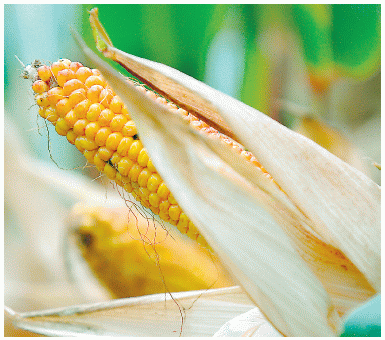 Ein reifer Kolben der Maissorte MON810 des US-Konzerns Monsanto. [AP]