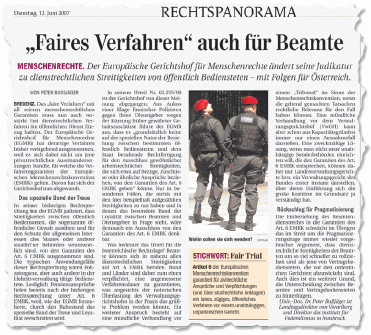 "Die Presse" hat bereits im Vorjahr auf die zu erwartenden Konsequenzen der neuen Rechtsprechung aus Straßburg hingewiesen. [Faksimile: "Die Presse"]