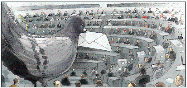 Den (vorläufigen) Mandatsstand im Parlament anschauen – und dann erst den Stimmzettel abschicken: Die Briefwahl macht das möglich. [llustration: Vinzenz Schüller]