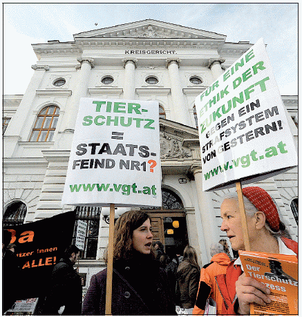 Der Prozess am Landesgericht Wiener Neustadt wird von Protesten von Tierschützern begleitet. [APA/Herbert Pfarrhofer]