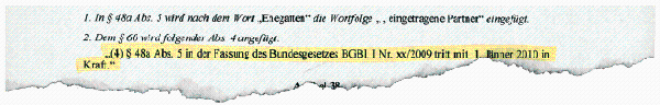 Der Nationalratsbeschluss spricht von "xx/2009". Veröffentlicht wurde das Gesetz ohne x, dafür mit einer Zahl. [Faksimile]