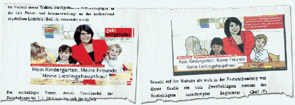 Das Wahlplakat und seine Abwandlung sind in der Entscheidung des OGH abgebildet. [Faksimile: "Die Presse"]