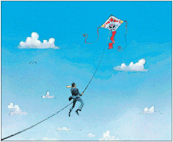 Aufsteigen mit dem chinesischen Drachen. [ Illustration: Vinzenz Schüller ]