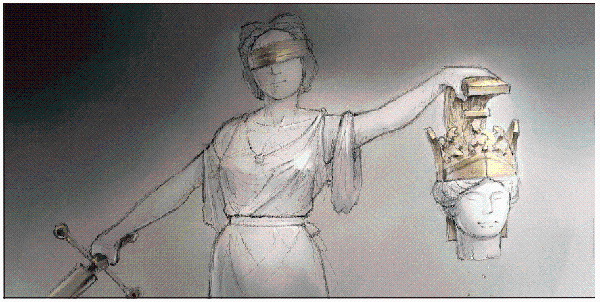 Justitia und Pallas Athene. [Illustration: Vinzenz Schüller]