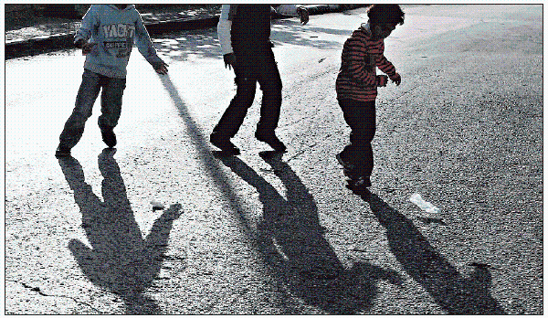 Drei Kinder, darunter ein Nachzügler mit einem anderen Mann. [AP/Muhammed Muheisen]