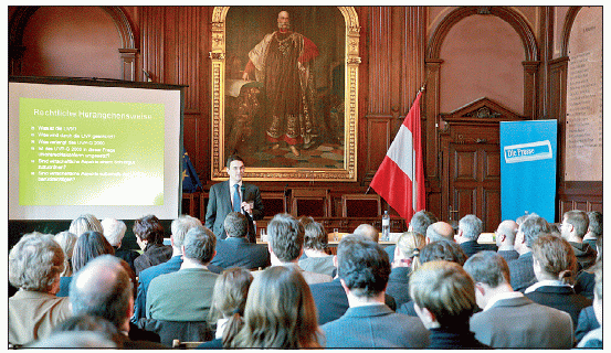 Rechtsanwalt Berthold Lindner im Boku-Festsaal: Vereinfachung nach geltendem Recht möglich. [ Reither ]