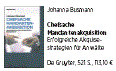 Johanna Busmann, frühere Lehrerin und seit 23 Jahren Trainerin von Anwälten und Kanzleien in Österreich und Deutschland, hat ein lesenswertes A–Z der Mandantenakquisition mit vielen kenntnisreichen und wertvollen Tipps verfasst. Alle muss man freilich nicht beherzigen – z. B. Zeitungen fertige (!) E-Mail-Interviews anbieten.