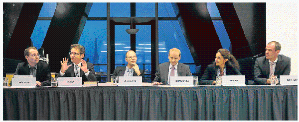 Die Diskutierenden (v. l. n. r.): Paul Pöltner, Thomas Ratka, Markus Öhlinger, "Presse"-Moderator Benedikt Kommenda, Irene Fialka und Robert Bachner. [Clemens Fabry]