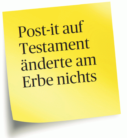 Wien. Auch ein kleiner Klebezettel kann einen Prozess auslösen. Das zeigt eine Entscheidung des Obersten Gerichtshofs. Im Mittelpunkt stand ein Post-it, das auf einem handgeschriebenen Vermächtnis klebte. Aber machte dieser Zettel das Testament (genau genommen das Legat, ging es doch um eine konkrete Liegenschaft) ungültig?