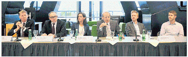 Die Diskutanten: Wolfgang Zankl, René Bogendorfer, Daniela Zimmer, "Presse"-Moderator Benedikt Kommenda, Alexander Schnider und Martin Zehetner (v. li. n. re.). [Clemens Fabry]