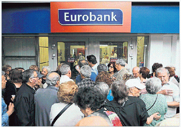 Griechen warten vor einer Bank. Das neue Gesetz zur Einlagensicherung soll ähnliche Szenarien in Österreich verhindern. [Bloomberg]