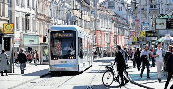 Betreiber von Straßenbahnen (im Bild der Grazer Hauptplatz) unterliegen einer besonders strengen Haftung.