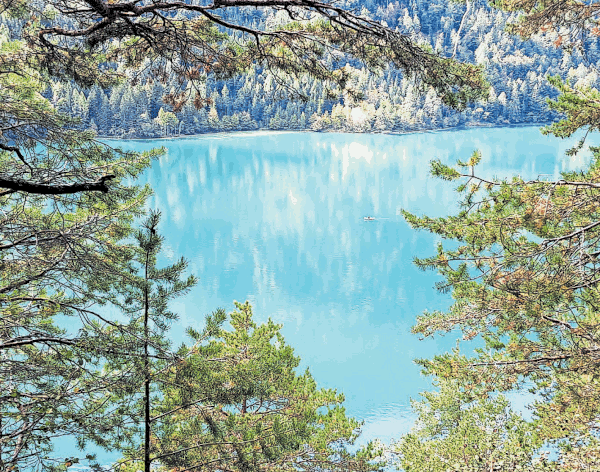 Der Weißensee ist für seine türkise Färbung im Sommer bekannt. Im Winter kann er zum Eislaufen genutzt werden.