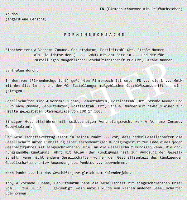 Wenn der Gesellschaftsvertrag einer GmbH die Auflösung der Gesellschaft durch Kündigung eines Gesellschafters vorsieht, ist die Auflösung und Liquidation der Gesellschaft zur Eintragung in das Firmenbuch anzumelden, wenn die Auflösung wirksam geworden ist.