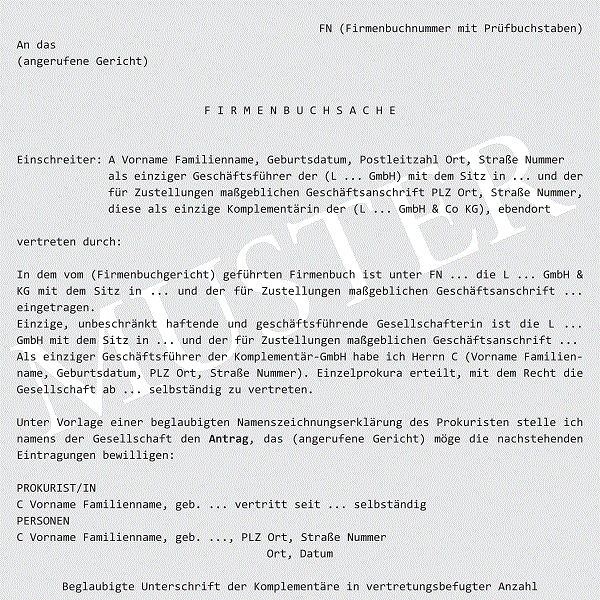 In den vielfach kommentierten E OGH 07.11.2007, 6 Ob 224/07w und 16.04.2009, 6 Ob 43/09f hat der OGH die Zulässigkeit von zwei speziellen Fällen der Prokuraerteilung bei einer „GmbH & Co KG“ an Geschäftsführer der Komplementär-GmbH verneint. Das Muster betrifft die Erteilung an eine vom Geschäftsführer unterschiedliche Person. Im Kommentar werden weitere Fälle behandelt bzw angeführt.