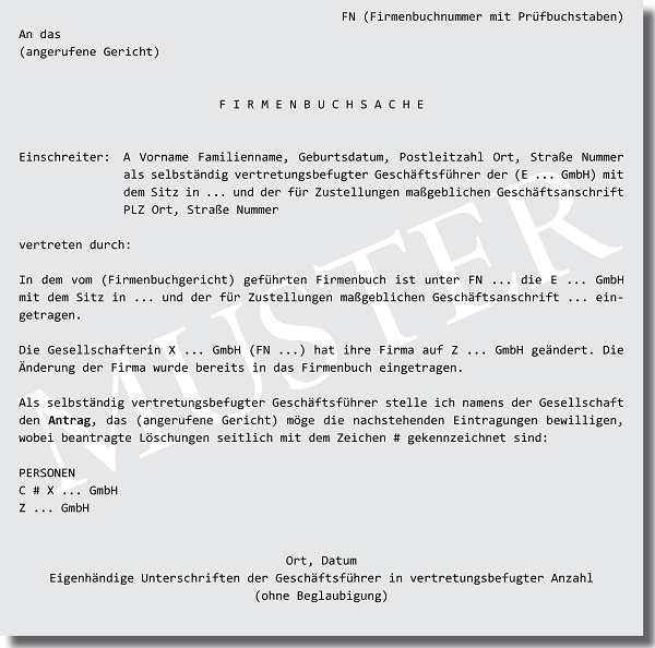Die Anmeldung der Änderung des Namens eines Gesellschafters einer GmbH zur Eintragung in das Firmenbuch kann in der vereinfachten Form des § 11 FBG vom Geschäftsführer oder auch durch einen dazu bevollmächtigten Vertreter vorgenommen werden (OGH 29.03.2000, 6 Ob 64/00f; RIS-Justiz RS0113392). Wörtlich gilt dies nur für die Gesellschafter einer GmbH.
