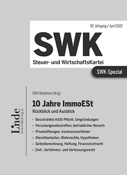Im jüngst erschienenen, von namhaften Autorinnen und Autoren aus Rechtsprechung, Finanzverwaltung und Beratungspraxis verfassten SWK-Spezial werden anlässlich des 10-jährigen Jubiläums der Einführung der ImmoESt wesentliche Fragen der Immobilienertragbesteuerung behandelt. Die am 1.4.2012 ist in Kraft getretene Reform der Immobilienertragbesteuerung hat grundlegende Änderungen der Besteuerung von Immobilienveräußerungen im betrieblichen und außerbetrieblichen Bereich sowohl bei natürlichen Personen als auch bei Körperschaften gebracht. Auch zehn Jahre danach wirft die Besteuerung von Immobilientransaktionen im EStG weiterhin viele höchst praxisrelevante Fragen auf. Das nunmehr erschiene SWK-Spezial bietet zugleich einen Rückblick als auch einen Ausblick und wird sich in der Praxis mit Sicherhalt als wichtiger Ratgeber erweisen.