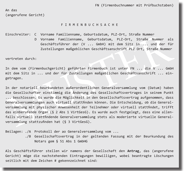 Das Bundesgesetz über die Durchführung virtueller Gesellschafterversammlungen (Virtuelle Gesellschafterversammlungen-Gesetz – VirtGesG), BGBl I 2023/79 ist am 14. Juli 2023 in Kraft getreten.