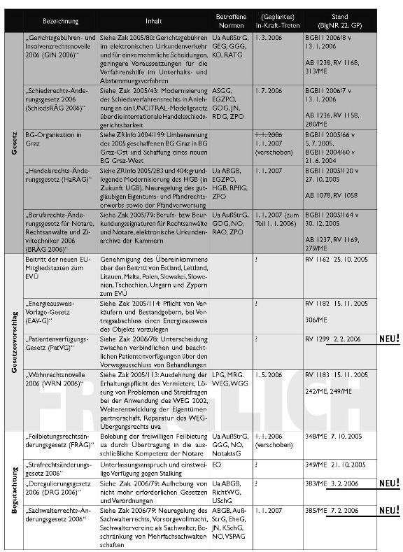 Aktuelle Gesetzesvorhaben