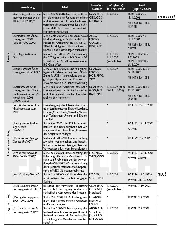 Aktuelle Gesetzesvorhaben